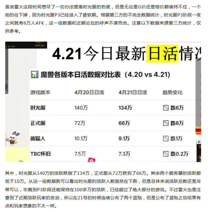 魔兽世界:一夜之间6万人AFK,雷火连续公布两个蓝贴救热度,结果出乎意料