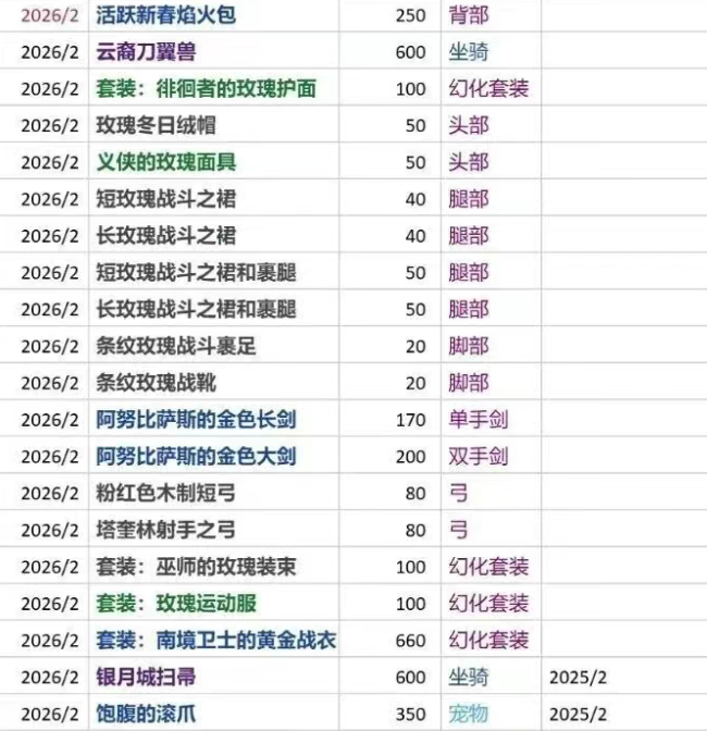 虽然暴雪公布2月份的商栈内容,但是数据大佬电视卫士已经把2月份的内容给提前放出来了,注意虽然说只是电视卫士大佬的推测,但是根据只是的情况来看,这位大佬的推测准确率高达100%,也就是只要这位大佬说有的内容那么一定会有(给出的数量有点多),到现在还没出错过,下面一起来看一下2月份到底会有那些绝版的东西返场。