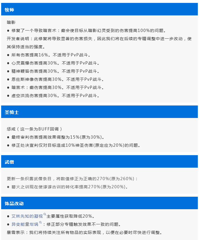 魔兽世界:3月19日到来的多项更新,涉及6个专精、2个饰品