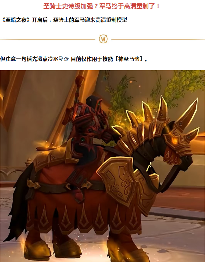 圣骑士史诗加强!《至暗之夜》军马高清重制 蓝红战马超帅!