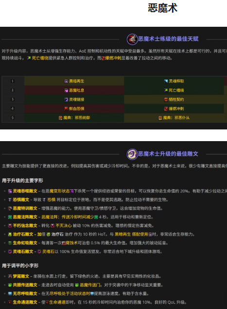 这篇文章带来术士三系练级天赋 & 雕文推荐!(来源Wowhead)