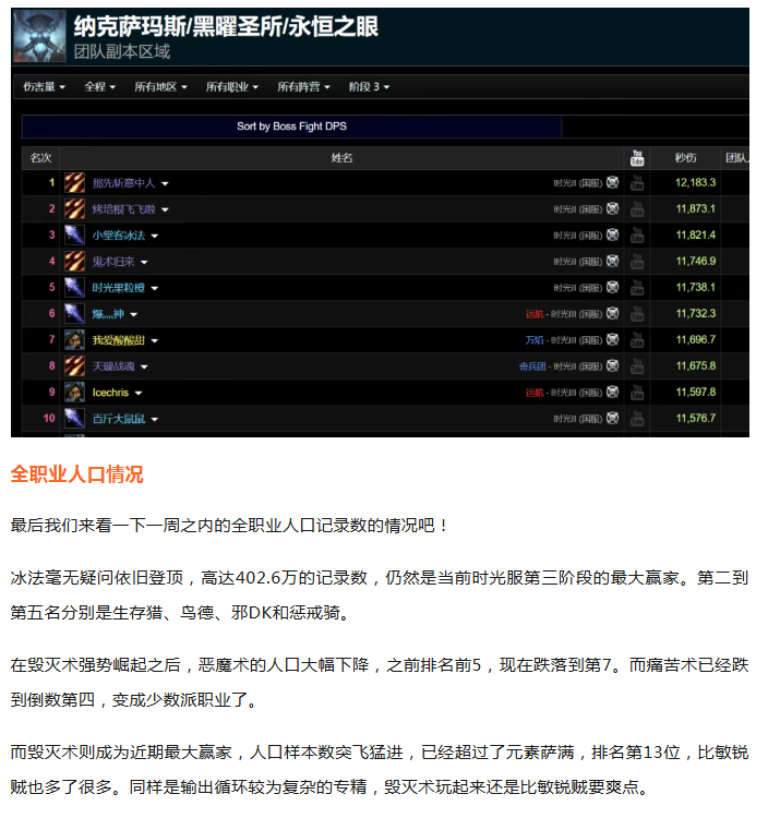 时光服最新DPS排行:毁灭王朝降临,伤害登顶人口暴涨