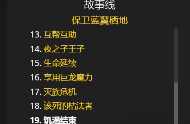 能量的平衡是一条在完成你的职业大厅战役后解锁的长篇任务线,前置要求是完成阿苏纳剧情任务,直到任务饥渴结束。