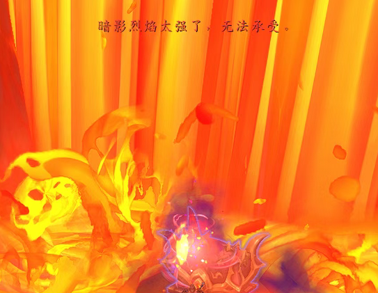 在这里,我们可以看到岩浆瀑布箱子有个箱子,如果这时候直接去跟他互动,会提示:暗影烈焰太强了,无法承受。