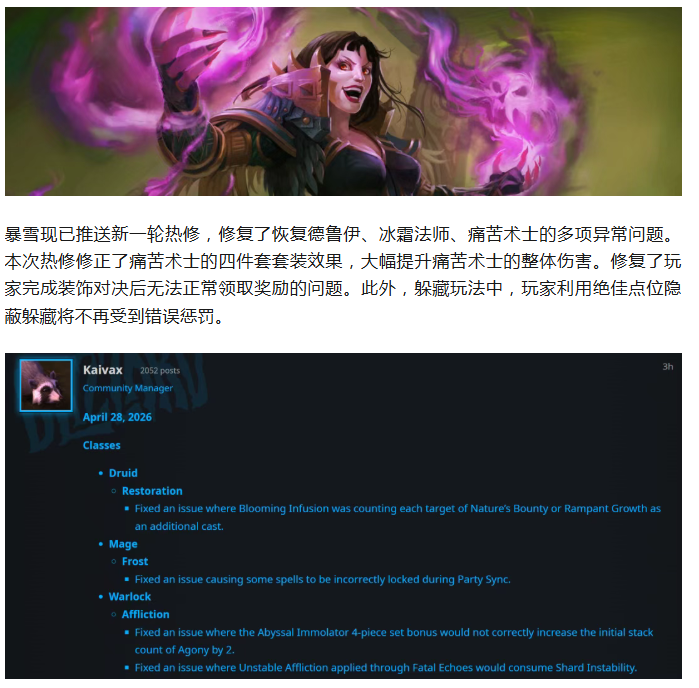 魔兽世界:4月29日在线热修!术士套装BUG修复!伤害提升!