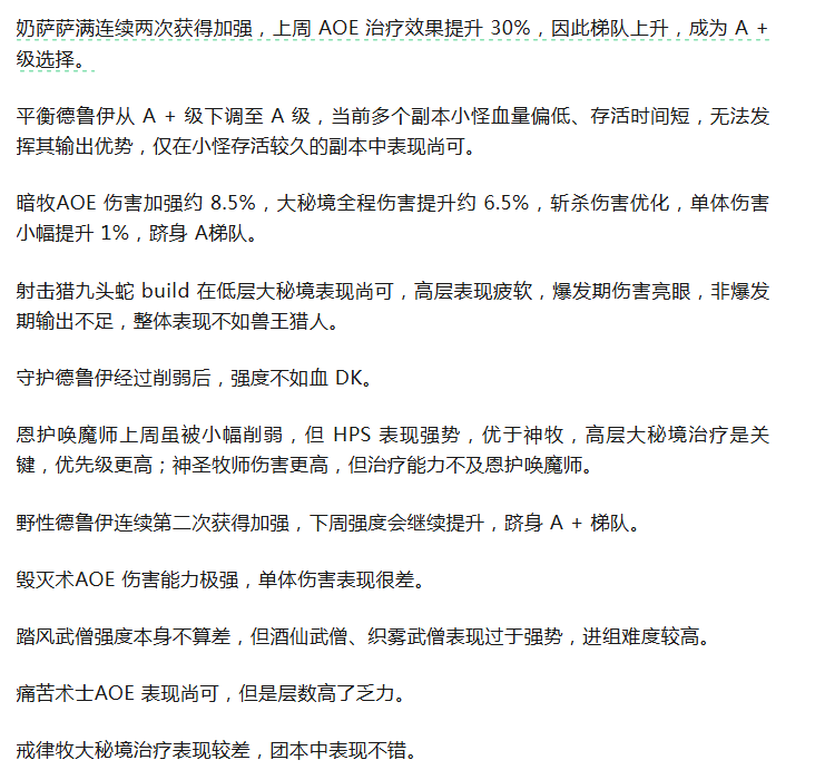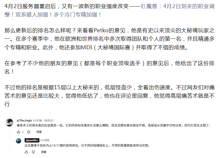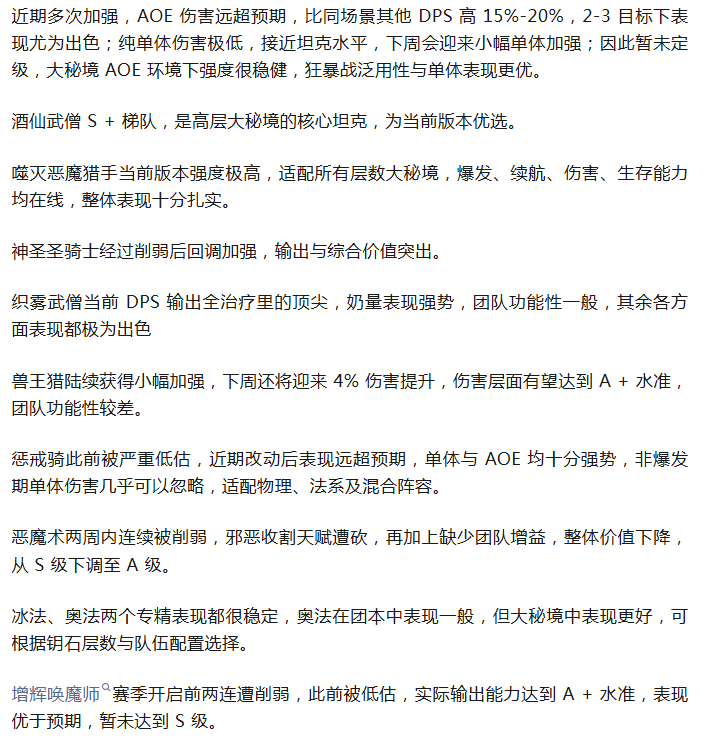 魔兽:4月2日更新后职业强度预测!五个专精封神!
