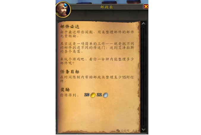 最后,我们会引导我们重新回到邮政长这边做任务,邮件必达完成之后就能获得成就啦,另外这里需要我们整理邮件,很多小伙伴对于老版本地图不熟悉的可以多训练几次,还是非常简单的。