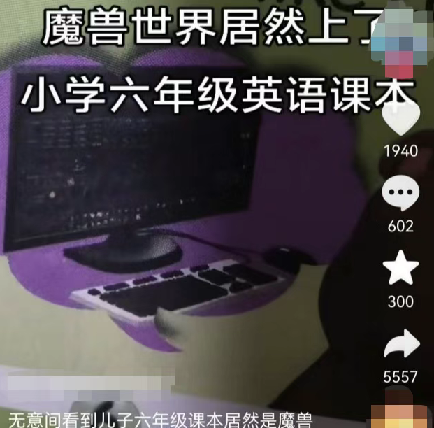 一位老父亲无意间发现了自己六年级的儿子英语课本上竟然有魔兽世界的内容,于是就发到了网上,引起了很多玩家的共鸣,原来魔兽直接并不是只有30+的人群了解,现在的小学生也都“被迫”接受了魔兽世界,魔兽世界下一批玩家已经开始冒头了。