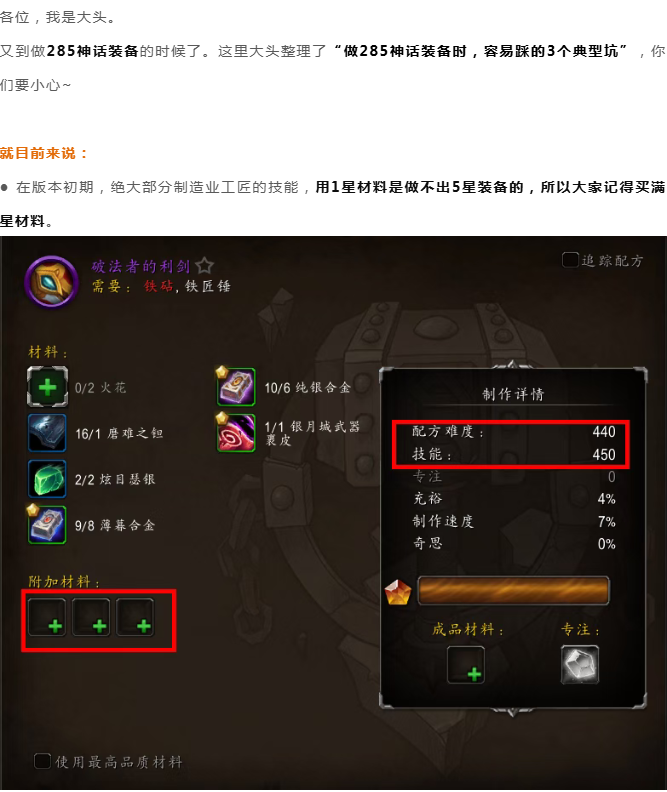 魔兽世界:大头提醒,做285神话装备时,这3个典型坑不要踩
