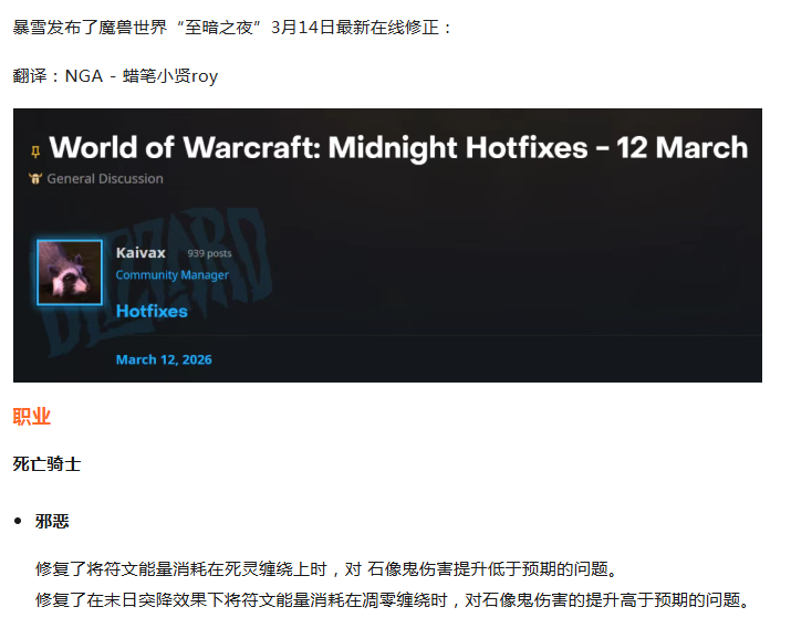 魔兽世界:3月14日在线修正