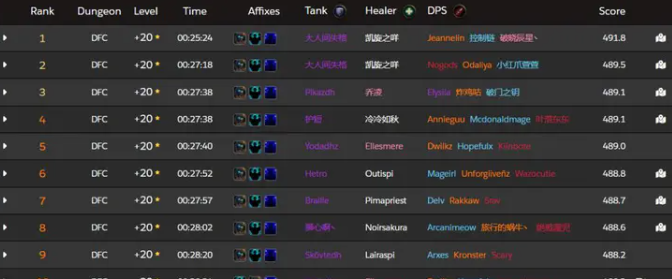但是从今天开始就一样了,惩戒骑彻底崛起了,仅花费25分24秒就完成了20层暗焰裂口,排名世界第二的也是这只队伍,但是把惩戒骑换成了邪DK,通关时间就增加了2分钟。
