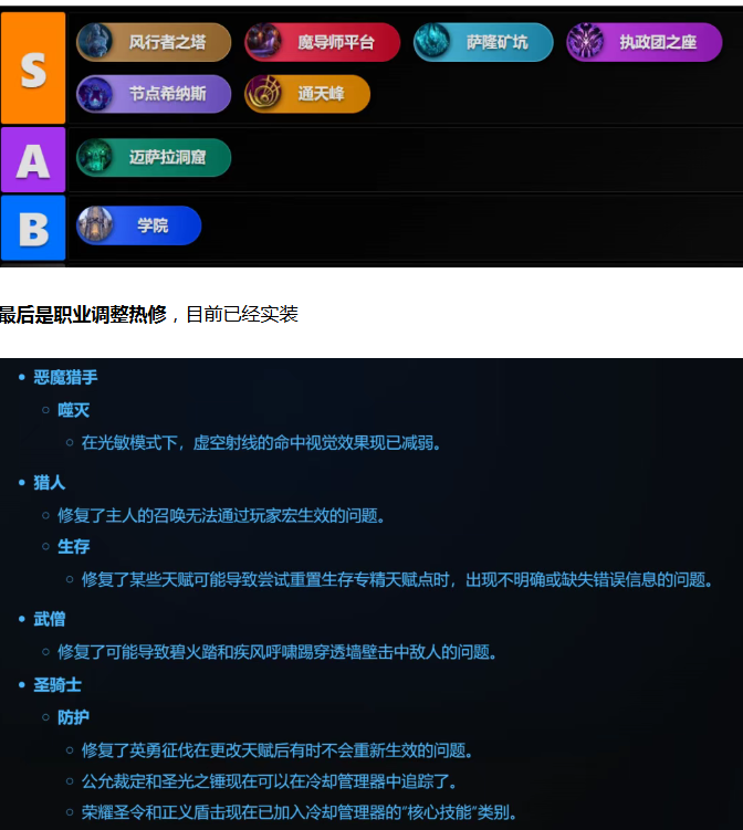 【魔兽世界】正式服3月31日补丁!4个职业获得加强,大秘境副本削弱