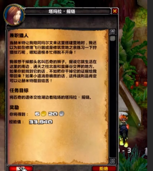 3、我们先顺路在河流之星找到塔玛拉,接到「兼职猎人」任务