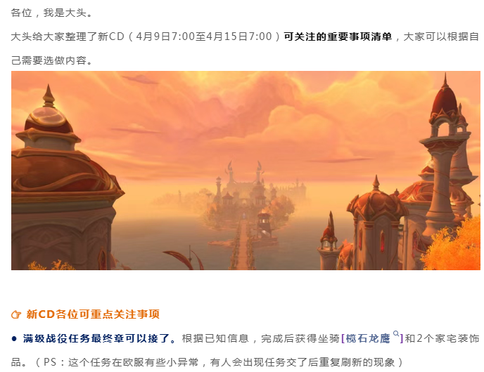魔兽世界:4.9-4.15新CD事项清单,战役送坐骑、家宅物品,4M周奖励H团本箱子,纹章别省