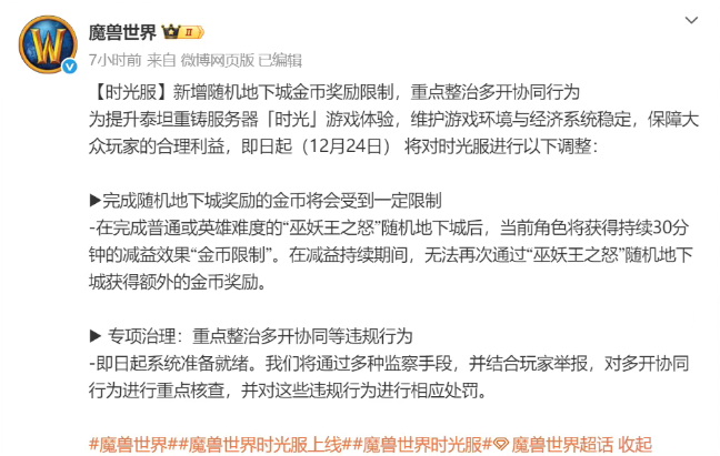 第一个消息是今天小O给大家分享过的【金币限制】debuff,30分钟内无法获取随机副本的金币奖励,防止玩家五开刷随机本混金币。