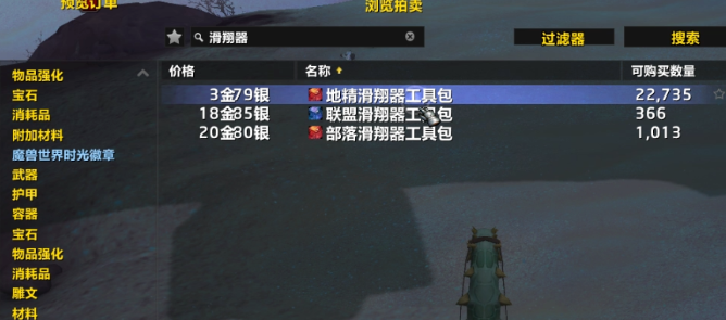 出发前,先去拍卖行买几个【地精滑翔器工具包】,保证能安全落地。