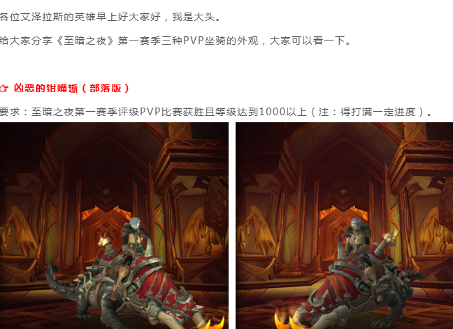 魔兽世界:至暗之夜第一赛季3种PVP坐骑外观预览,角斗士龙不错