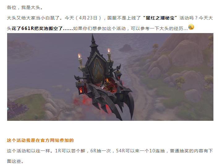 魔兽世界:大头砸了661R评测“猩红之潮秘宝”活动,3款核心奖励点评:夯爆了、NPC、拉完了