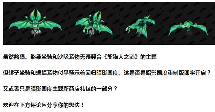 暗影国度重制版将近?最新煞类坐骑以及温西尔风坐骑亮相!