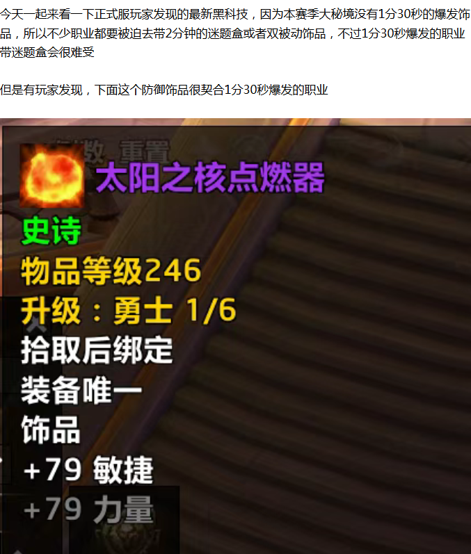 【魔兽世界】正式服最新黑科技!这个防御饰品成了DPS的BIS饰品