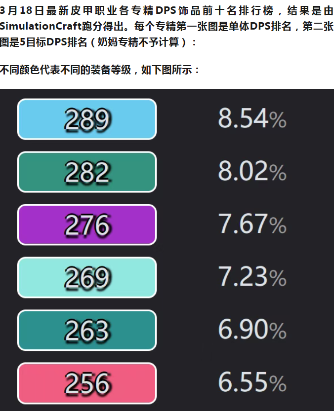 3月18日全职业专精DPS饰品Top10排行榜-皮甲篇