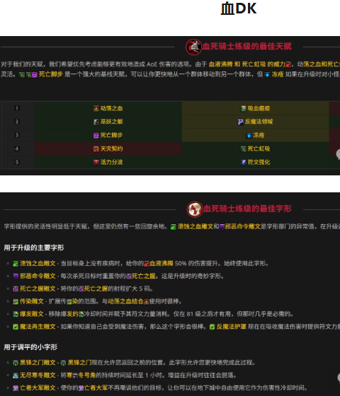这篇文章带来死亡骑士DK三系练级天赋 & 雕文推荐!(来源Wowhead)