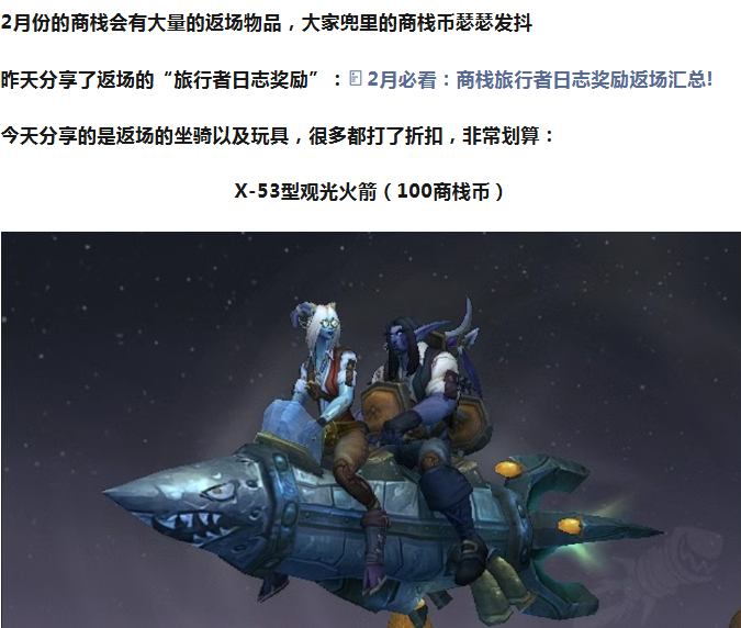 坐骑&玩具全打折:2月商栈返场狂欢!