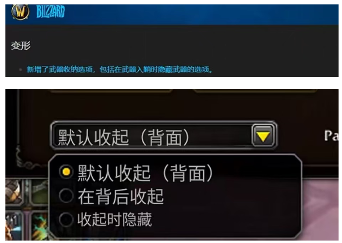 暴雪最新蓝贴,在12.05版本中队幻化系统做出史诗级优化,玩家可以自主选择武器收纳位置,这对于一些职业来说非常的有用,比如法系职业可以完整的展示你的幻化效果,同时单手剑也可以上背了,双手武器也能幻化成单手武器,非常是实用。
