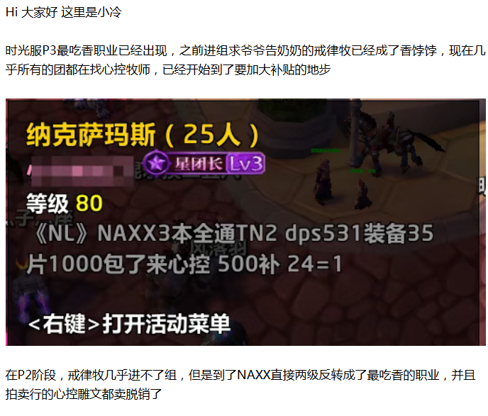 【魔兽世界】时光服P3最吃香职业已出现!团长出资500G补贴求进组