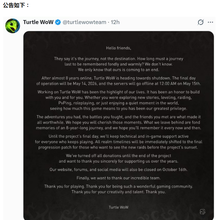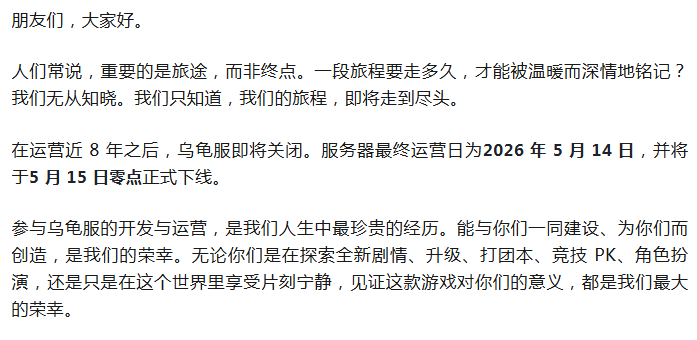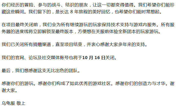 魔兽:史上最强私服乌龟服宣布将于5月正式停运!