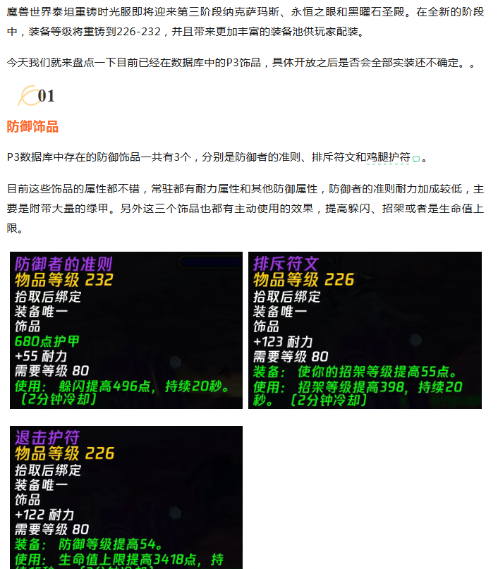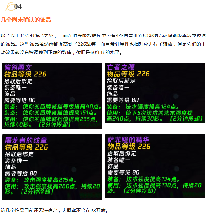 魔兽时光服:P3新增19个饰品全面盘点,大量极品一次性放出