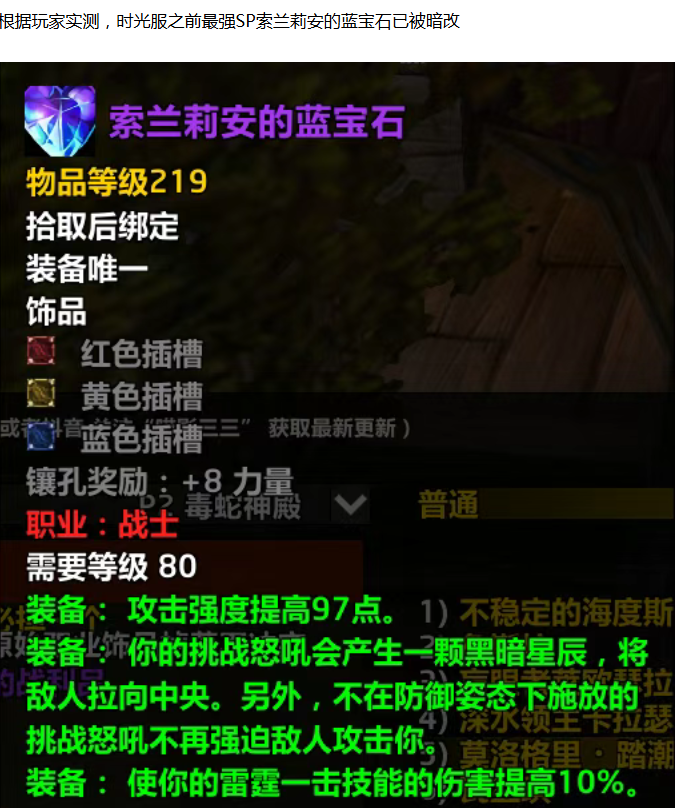 【魔兽世界】时光服P2最强饰品已被暗改削弱!大量玩家已哭晕