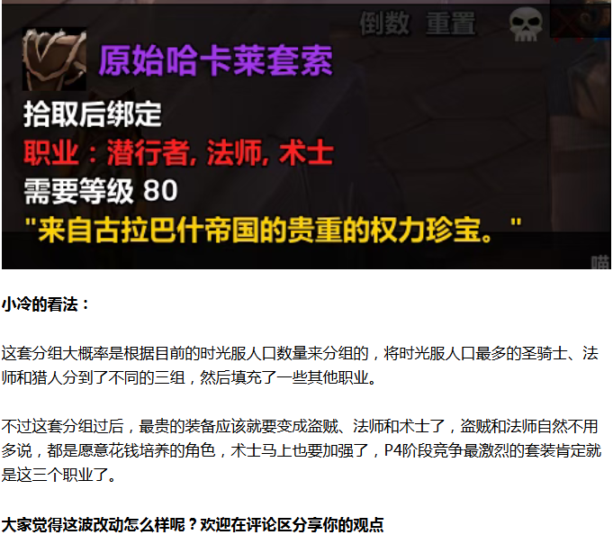 【魔兽世界】时光服重磅改动!套装分组即将变更,法贼术套装将大幅涨价