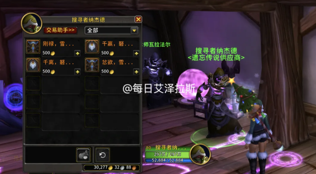暴雪为暴风城/奥格瑞玛的虚灵幻化屋新增了一位名为搜寻者纳杰德的NPC,它会售卖玩家过去遗失的传说物品,包括橙披、风剑等。当然,你必须曾获得过它们才能重新买回来,并不会平白无故点击就送橙装。