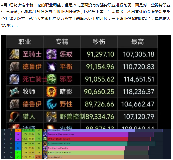 魔兽世界:12.0最闷声发大财的职业,伤害突然登顶单体第一