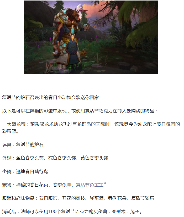 魔兽:复活节4月6日至13日!今年新增一套幻化!