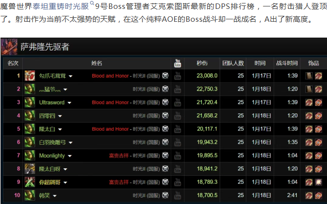 魔兽时光服:A出新高度!射击猎首次登顶Boss输出榜首