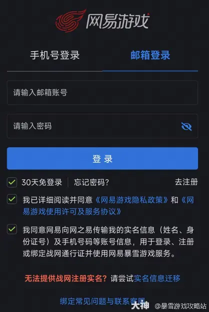 3.重新登录已实名迁移的网易邮箱账号完成与战网通行证的绑定