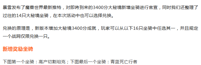 魔兽世界:14款返场绝版坐骑揭晓!暴雪公布大米3400两款新坐骑