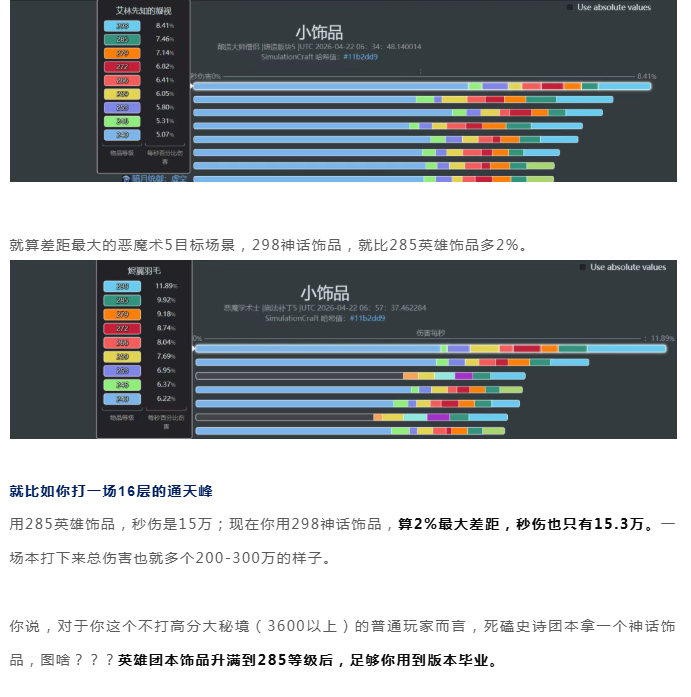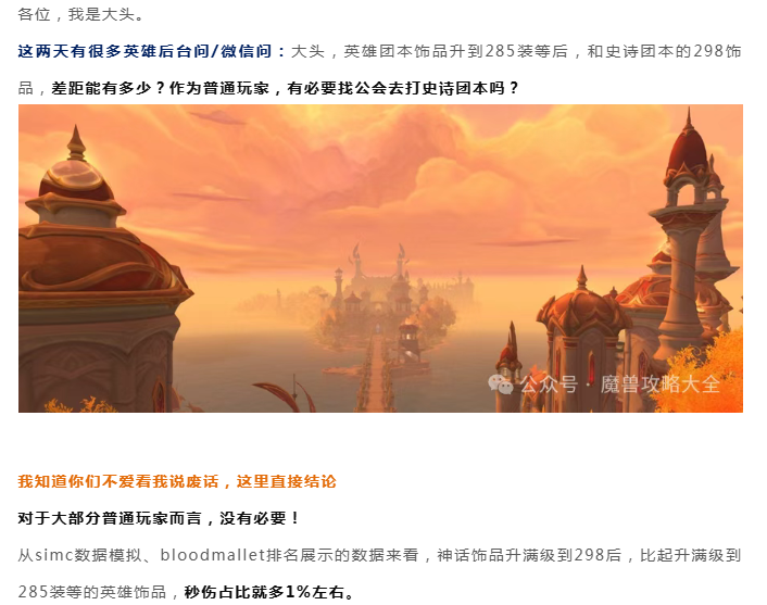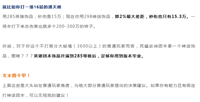 魔兽世界:卷神话团本饰品图啥?285英雄团本饰品够用了,神话才多1-2%,别跟自己过不去