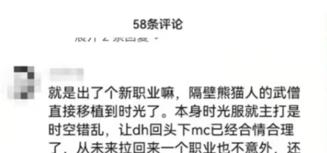 近日时间时光服的爆料层出不穷,有加强职业的也有增加新职业的,其中加强职业的职业是惩戒骑,大概率在下周就实现。然后就是增加新职业武僧,不过这只是玩家的一个猜测,如果雷火真的这样魔改,那么以后再来什么改动也不会觉得稀奇了。