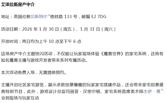 魔兽:艾泽拉斯房产中介将开设首家线下实体门店!