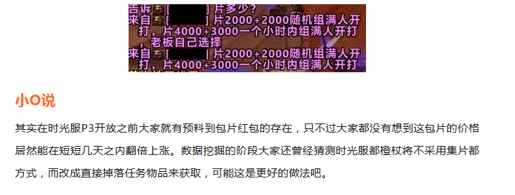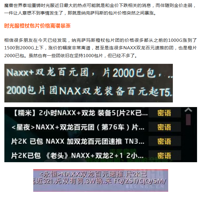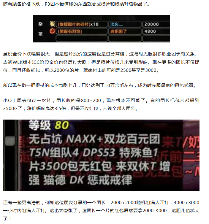 魔兽时光服:橙杖包片价格一天内暴涨,有团长提价3.5倍!