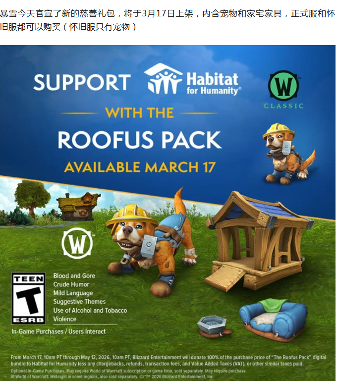 魔兽新慈善礼包官宣!国服玩家也有望获得!