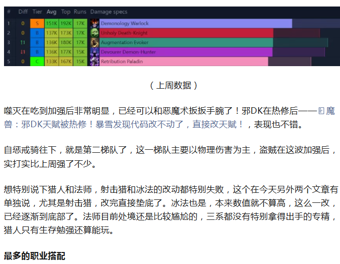 魔兽:本周DPS数据!噬灭DH邪DK加强明显!五个职业霸榜!