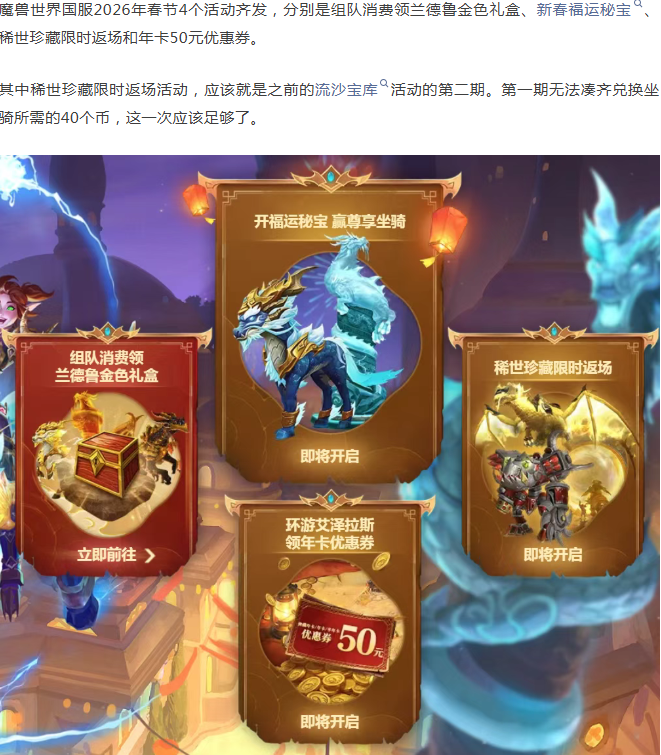 魔兽国服春节4大活动齐发,其中有一个0氪值得关注!