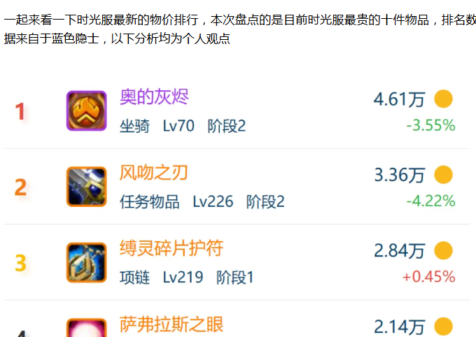 【魔兽世界】时光服P2最新物价排行!一件P1掉落的装备比P2橙色物品还贵