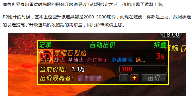 魔兽时光服:橙装升级道具改动之后价格暴涨!