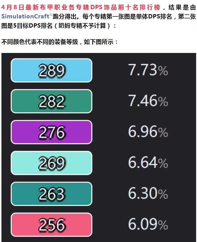 4月8日全职业专精DPS饰品Top10排行榜-布甲篇