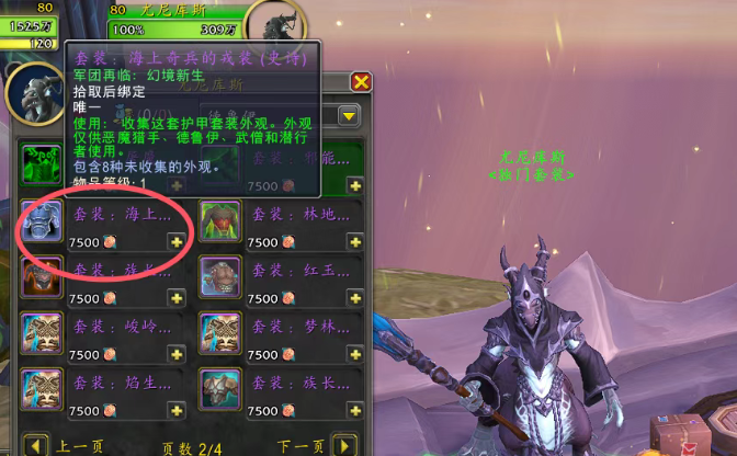 同样是找到幻化NPC边上的尤尼库斯,找到海上奇兵的戎装,7500青铜币就可以兑换了。